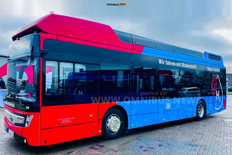 Caetano hat sechs FCEV-Busse der H2CityGold-Baureihe aus dem Rahmenvertrag mit der Deutschen Bahn an Weser Ems Bus (Teil der DB Regio Nord) geliefert. Foto: DB Regio Bus / Deutsche Bahn