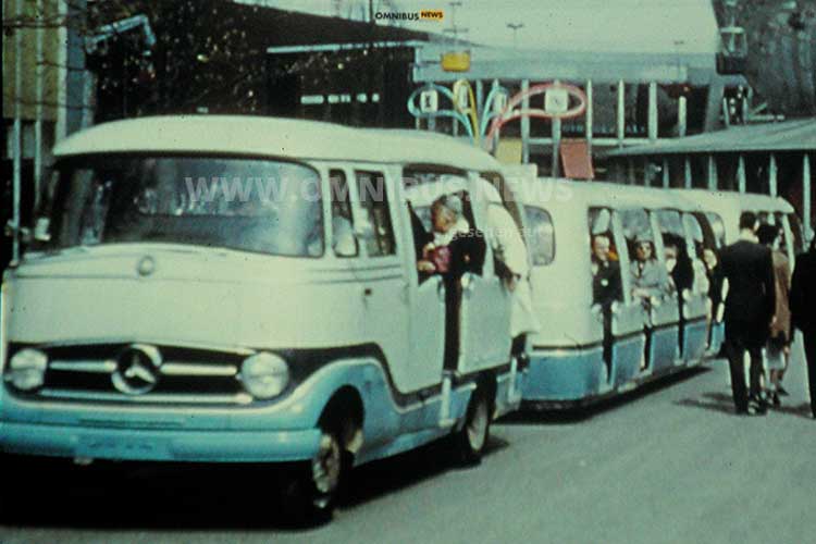 Auf der Expo 58 gab es einen 20 Messezüge, der die Besucher über das Ausstellungsgelände fuhr. Foto: Mercedes-Benz