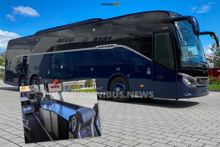 Das schwedische Busunternehmen Interbus hat im 60sten Jahr seines Bestehens einen S 516 HD mit Konferenzbusausstattung übernommen. Foto: DaimlerTruck; Montage: omnibus.news