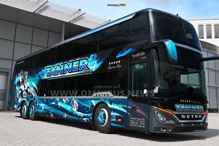 Die Tanner KG krönt ihr 50‑jähriges Bestehen mit einem neuen S 531 DT. Der Setra-Doppelstockbus, der den Namen des nordgermanischen Gottes Thor trägt, macht die Busreise zu einem Erlebnis. Das 1975 gegründete Familienunternehmen Tanner aus Dormitz in Oberfranken, das in der zweiten Generation von Robert Tanner geführt wird, setzt seit Mitte der 1990er-Jahre auf individuelle und exklusive Außen- und Innendesigns seiner sieben Setra-Reisebusse. Poseidon, Skorpion, Phönix oder auch El Diabolo – die Fahrzeuge des reinen Setra-Fuhrparks sind mit ausdrucksstarken Motiven von Sternzeichen, Fabelwesen oder eben Gottheiten echte Hingucker. So auch „Thor“, der an das reisende Volk der Wikinger erinnert.