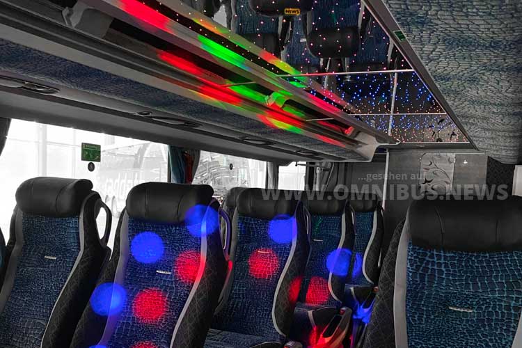 Das Jubiläums-Doppeldecker der Setra TopClass beeindruckt durch seine edle Ausstattung: Das Unterdeck bietet eine Spiegeldecke und einen LED-Sternenhimmel, außerdem eine moderne Soundanlage sowie eine Disko-Beleuchtung. Hinter dem Cockpit befindet sich ferner eine integrierte Kücheneinheit. Das Oberdeck ist mit einem Glasdach ausgestattet. Insgesamt finden 78 Reisende auf komfortablen Sitzen Platz. Der Dreiachser, der alle aktuellen Fahrerassistenz- und Sicherheitssysteme an Bord hat, darunter auch eine 360-Grad-Kamera, wird von der Tanner KG nicht nur im Anmietverkehr, sondern unter anderem auch für Firmenevents, Klassenfahrten und Vereinsausflügen in ganz Europa eingesetzt. (DaimlerBuses/Setra/PM/Sr)