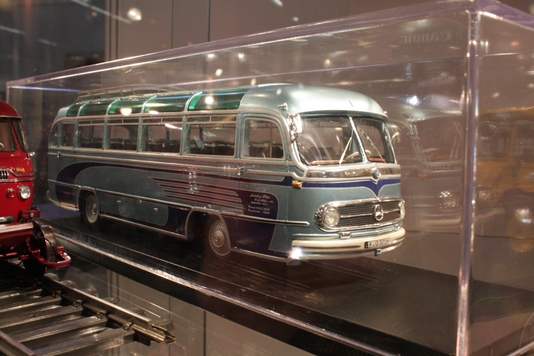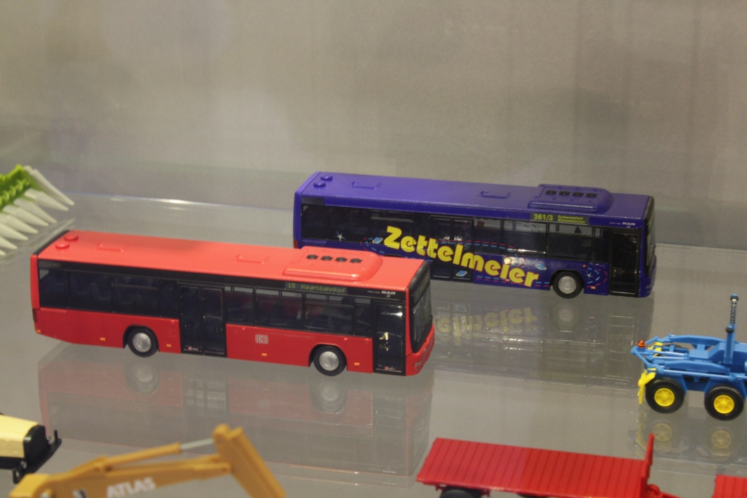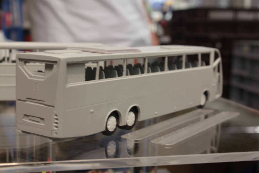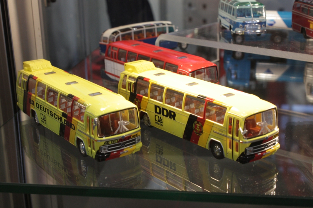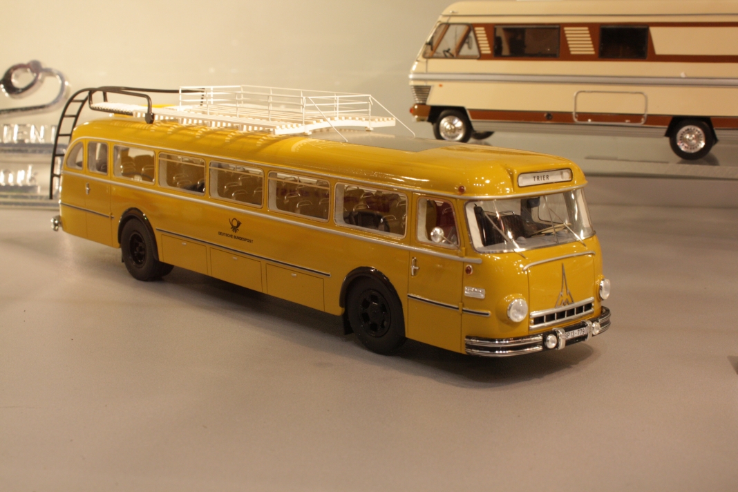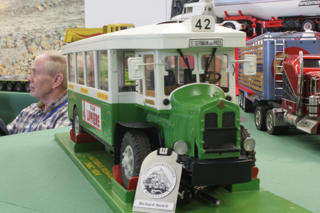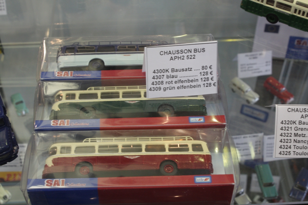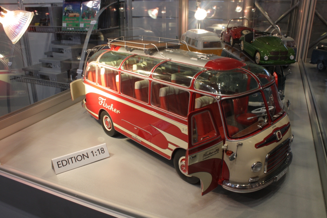 Stefan Frey hat sich auch in diesem Jahr wieder auf der Intermodellbau in Dortmund nach Modellbussen umgesehen. Der Weg ins ruhrgebiet habe sich gelohnt, wie er schreibt. In den letzten Jahre hat sich die Intermodellbau verändert, keine Frage. Hersteller und Händler entschieden sich gegen einen Messeauftritt, neue Anbieter oder auch alte Bekannte waren aber wieder da. Subjektiv waren in diesen Jahr wieder mehr Besucher in den Gängen der Dortmunder Westfalenhallen unterwegs. Aus sich der Modellbusfreunde und -bastler sind natürlich Hersteller wie MEK, Rietze und VK Modelle die Anlaufpunkte Nummer eins. Ja, dieses Jahr war die Firma Rietze mit einem eigenen Messestand in Dortmund zu Gast. Es wurden zahlreiche Modelle zu Messe-Preisen angeboten, zu erwähnen war da der Mercedes Travego in 1/43 in verschieden Ausführungen zu 50 Euro und ein „Wühltisch“ mit 1/87er Modellen zu je 8 Euro. Ferner brachte Rietze ein Sondermodell eines Mercedes Citaro der Dortmunder Firma TRD-Reisen zur Intermodellbau mit. Auch die Firma MEK war dieses Jahr wieder mit einem eigenen Stand vertreten. Alle neu angekündigten Modelle aus dem letzten Jahr wurden als Bausätze angeboten werden, bis auf den IVECO CityClass, der noch einmal nur in der Vitrine zu finden war. Zwei neue Modelle, ein Scania Omniexpress – den Postbus als Fernbus einsetzt – und ein Setra S 216 HDS wurden als Neuheiten vorgestellt. Bei VK Modelle waren die Modelle aus der laufenden Fertigung am Stand zu kaufen. Die schon lange angekündigten Neuheiten des Setra S 12 und des Van Hool A300 waren zumindest durch neue 3D-geduckte Modelle in der Vitrine vertreten. Die Frage nach einem Erscheinungstermin habe ich dieses Jahr nicht gestellt. Weiter gediehen waren die Modelle des Solaris Urbino Nachfolgers, die nun auch als dreitüriger Gelenkbus und Solobus kurz vor der Vollendung stehen. Am Stand von Schuco war der Setra S 6 nicht nur im HO Maßstab, und 1/43 sondern auch als 1/18 Modell zu bewundern. Der große S 6 ist ein echtes Highlight der Modellbaukunst. Daneben wurden auch neue Bedruckungsvarianten bekannte Modelle gezeigt. Ach der Auwärter Neoplan Renndienstwagen war wiederum in der Vitrine. Bei Mo-Miniatur wurde wieder der Mercedes O 321 H im Maßstab 1/32 angeboten. Zu ihm gesellte sich eine Minitaur des NWF SchiStraBusses, der auch mit den passenden Schienenfahrgestellen angeboten wird. Bei ausreichender Nachfrage soll auch eine motorisierte Variante auf den Markt kommen. Der aufgerufene Preis dafür ist gerade nicht vierstellig. Neben den ganz großen Modellen waren auch zwei Mercedes O 321 H in Post und Bahnausführung im Z Maßstab 1/220 am Stand. SAI aus Frankreich brachte die bekannten Modelle mit zur Messe und bot diese zum Kauf an. Neu dazugekommen ist ein Modell des Peugeot D3A/D4A Kleinbusses. Am Stand der Firma Lemke waren im N-Maßstab neben den sehr gut gemachen eigenen Modellen nun auch die Modellbusse von Minichamps in neuen Bedruckungen zu sehen. Als Neuheit unter den eigenen Modellen wurde ein VW T3 angekündigt. Ich habe auch wieder interessante Stücke gefunden, wie die as Wohnmobil hergestellten Blechbusse oder den ferngesteuernten Renault TN6C. Die Kreativität der Modellbauer ist auch im Busbereich fast genzenlos!!! Vielen Dank an Stefan Frey für den Text und die Fotos!