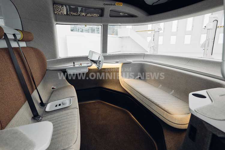 Mit seinem sogenannten „human centric Interior“, also einer noch intensiveren Fokussierung auf den Fahrgast im Mittelpunkt der Entwicklung, hochwertigen Materialien und einem neu gedachten Raumerlebnis soll die Akzeptanz autonomer Mobilität deutlich erhöht werden. Foto: UEStudios