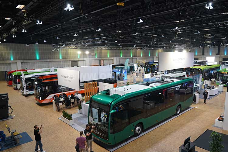 15 Omnibusse sind in der Messehalle 2 ausgestellt. Foto: omnibus.news