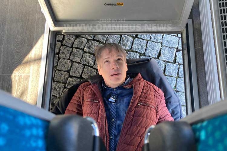 Zurück zum heutigen Test: Was sieht er denn nun oder was genau hat er als Neuheit ins Visier genommen? Etwas Erstklassiges, wobei, wenn man es genau nimmt, dann geht es um die Klasse II… Und natürlich ist der Beitrag für BUS TV auch als Test in gedruckter Form in der nächsten Omnibusrevue zu finden. Vorgestellt wird, wen wundert es, eine Premiere einer deutschen Busmarke, die seit dem viertem Quartal 2025 bereits bestellbar ist und mit einem Batteriepaket „Made in Germany“ auf nachhaltige Mobilität setzt.