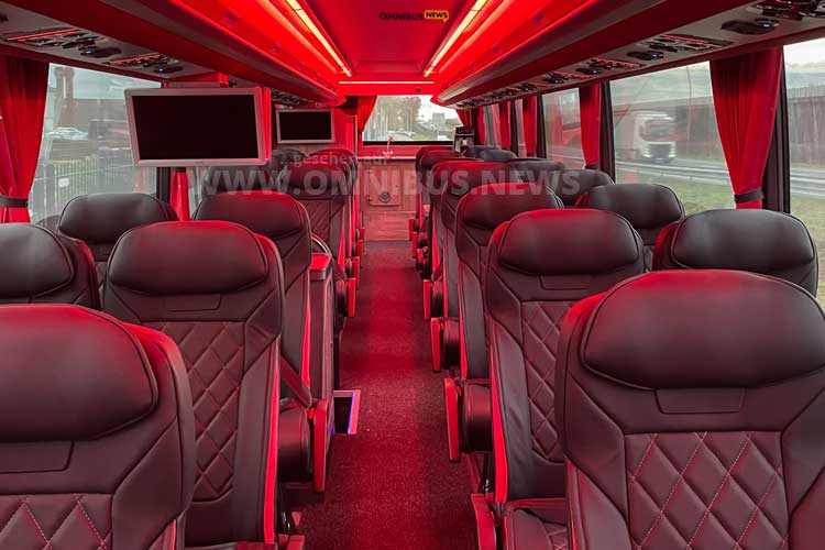 Ob das umfangreiche Soundsystem während der Fahrt auch Fangesänge einspielt? Dazu schweigen Busbetreiber und Fußballclub… Wer die großzügige Heckküche verlässt entdeckt beim Gang durch den Bus dann noch Laptop- bzw. Stromanschlüsse an jedem Platz und mehrere Bildschirme. Bert Fonteijn von Kupers Touringcars freute sich anlässlich der Auslieferung im Hause der VDL Bus Group zusammen mit An-Sophie Meeuwissen von der VDL Bus Group über die „sportliche Leistung“ der Spitzenklasse. Der Van Hool Acron sei unter dem Dach der neuen VDL Bus Group der passende Mannschaftsbus. (Kupers/VDL/PM/Sr)