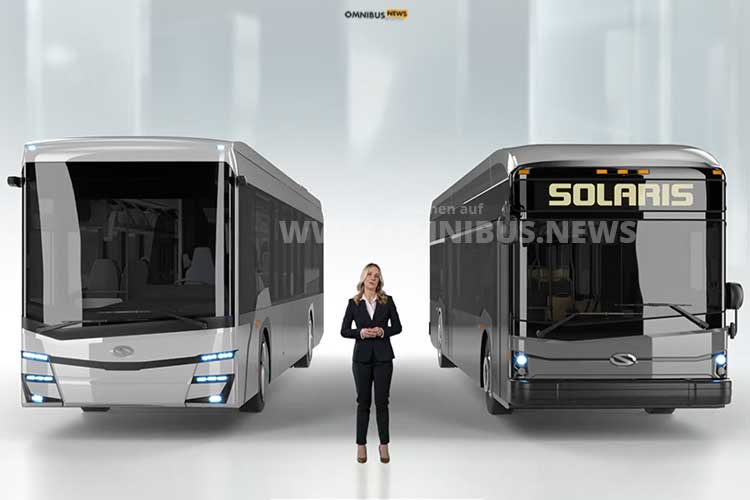 Zwei neue Baureihen standen bei der Jahresbilanzpressekonferenz im Fokus: Der neue BEV-/FCEV-InterCity und der US-Urbino- Foto: Screenshot Solaris