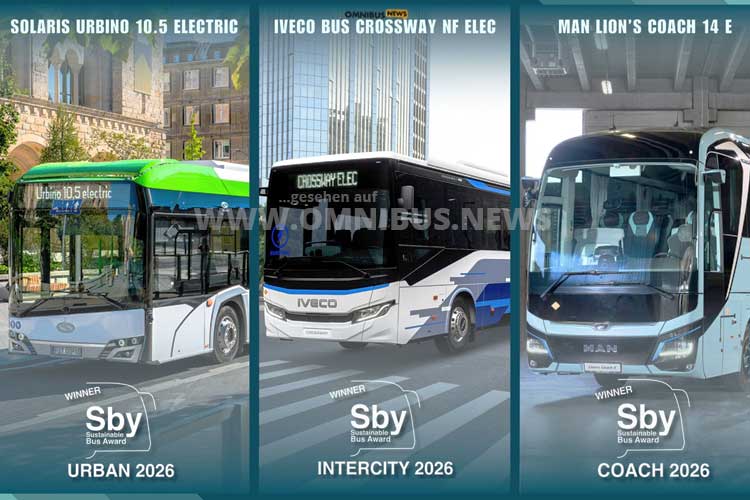 Die Sieger der Sustainable Bus Awards 2026, Solaris, Iveco Bus und MAN, wurden gestern Abend im Rahmen einer Gala im Vorfeld der Busworld in Brüssel gekürt. Die internationale Jury, bestehend aus zehn Fachjournalisten aus ganz Europa – für Deutschland ist omnibus.news als Mitglied in der Jury – schloss ein umfassendes Bewertungsverfahren mit 14 Fahrzeugkandidaten in den drei Kategorien Stadtverkehr, Überlandverkehr und Reisebus ab. Die Arbeit der Jury war das Ergebnis einer eingehenden Analyse.