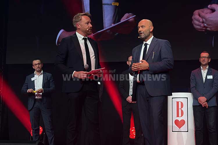 Heinz Kiess, Head of Product Marketing Bus bei MAN Truck & Bus, freute sich über die erste Auszeihnung für den neuen Elektro-Reisebus Lion‘ Coach E von MAN. Foto: SBY/Busworld