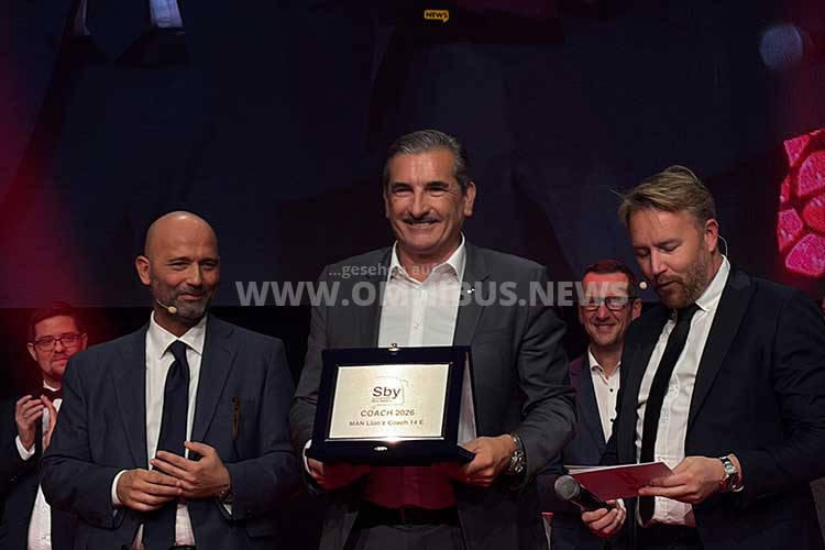 Der Sustainable Bus Award 2026 in der Kategorie Reisebusse geht an den MAN Lion’s Coach 14 E. Der Elektro-Reisebus verfügt über einen vollelektrischen Antriebsstrang mit einer Dauerleistung von 330 kW und einer Batteriekapazität von bis zu 534 kWh, die schnelles Laden und eine für den Langstreckenverkehr geeignete Reichweite ermöglicht. Eine Hochleistungsspeicherkonfiguration ermöglicht laut Hersteller je nach Bedingungen eine Reichweite von bis zu 650 Kilometern.
